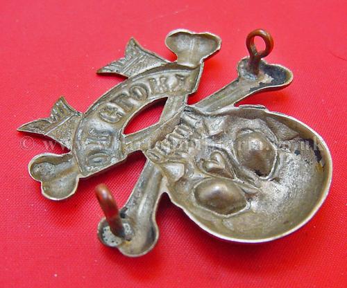 17/21 Lancers arm chad or motto in white metal, both lugs intact, these arm badges are getting quite scarce.