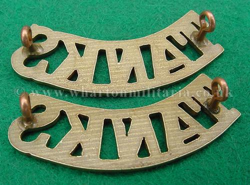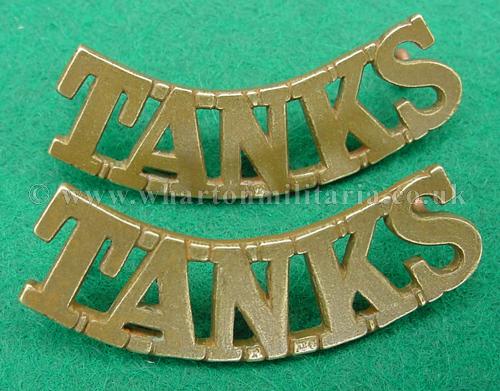A scare pair of Royal Tank Regiment 'TANKS' brass shoulder titles, nice condition. These are becoming hard to find as a pair.