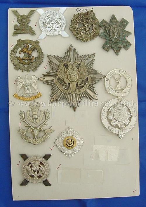 I shall be breaking up these 5 cards of Scottish regimental cap badges and will be doing photographs in due course ready to list the badges individually. If you see something that you require for your own collections simply email me. I will sell individually, in multiples or as a whole. I have a similar number of cards of just Officers cap badges too, again all available.