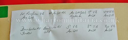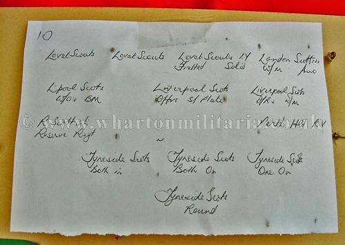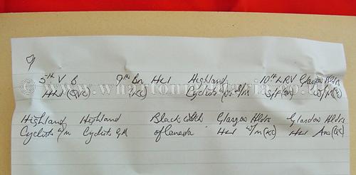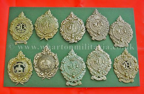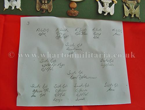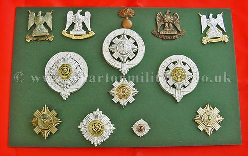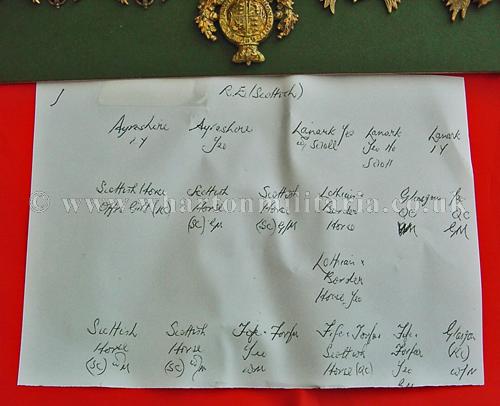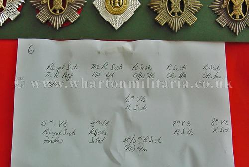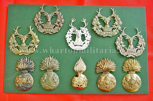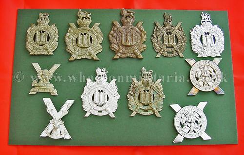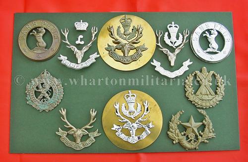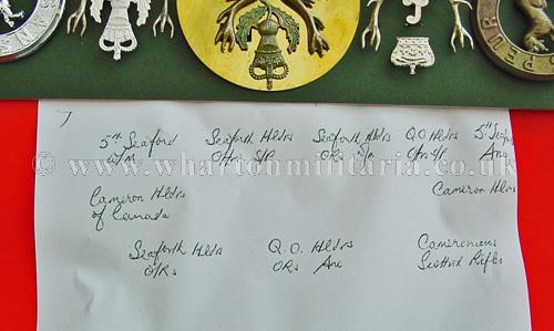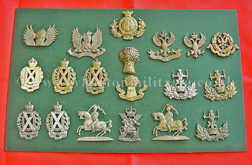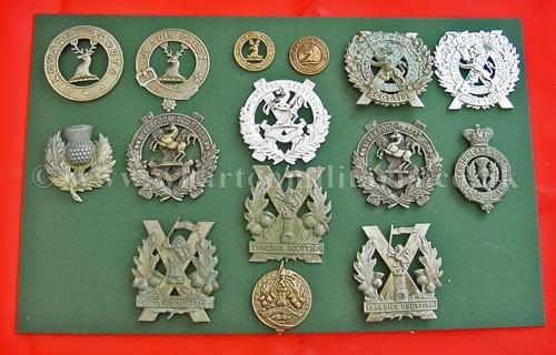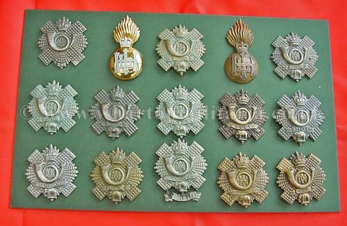 A large collection of Scottish Regimental cap badges mounted by regiment, each card covering various years of the regiment's history - double click image to see picture file - this has been an old collection, almost a shame to break up, nicely mounted on green card, these cards were all stored in an old wooden chest which I will be listing shotly, the chest is named to 'Colonel Wallace, MS Corps'. That aside, some excellent Scottish badges within the collection.