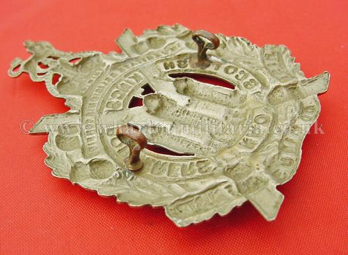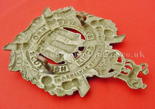 Kings Own Scottish Borderers cap badge, KC, white metal