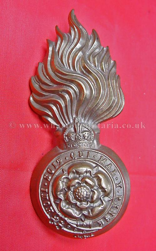 Royal Fusiliers fur cap grenade badge, Kings Crown, both long lugs intact, excellent condition, a nice example