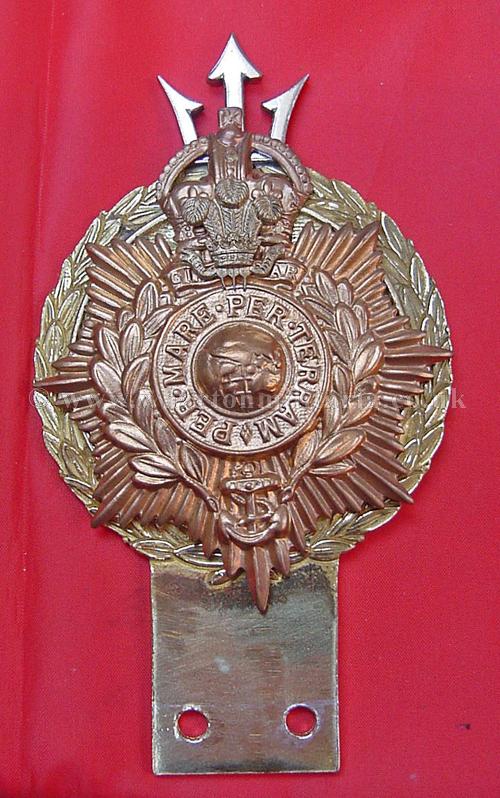 A Royal Marines car grill badge in excellent condition, approx 13cm height by 7cm width, a nice old style car badge.