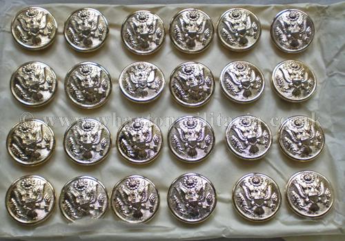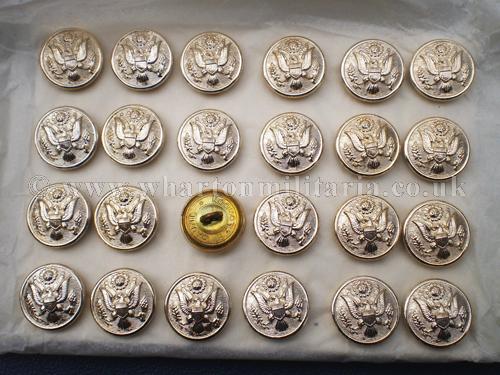 A card of 24 American Forces 18mm silver coloured buttons, in unissued unused condition, maker marked 'Gaunt, London' on the button backs.