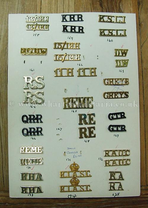 Various shoulder titles, all in excellent undamaged condition, for sale by singles or pairs