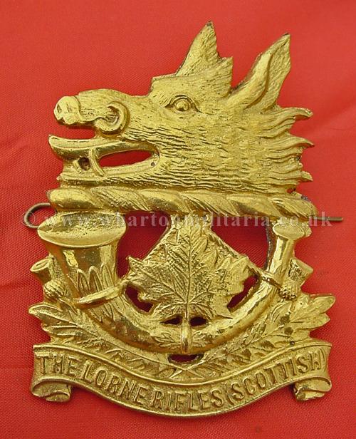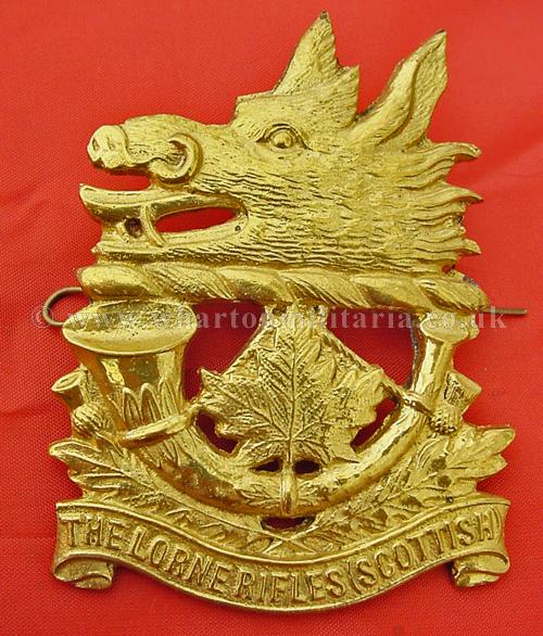 A difficult to find Canadian Lorne Rifles (Scottish) glengarry badge, circ 1931 - 1936, both lugs intact, approx size 3 x 2 1/4 inches, lovely badge