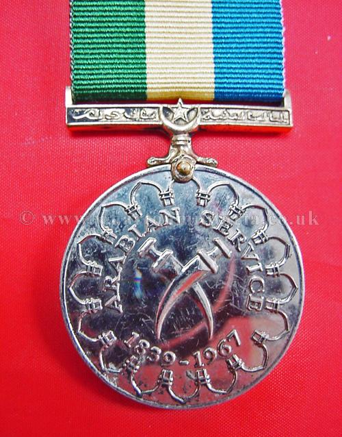 Arabian Service Medal, instituted by the Aden Veteran's Association to commemorate British Forces involment in South Arabia from 1839 to 1967.