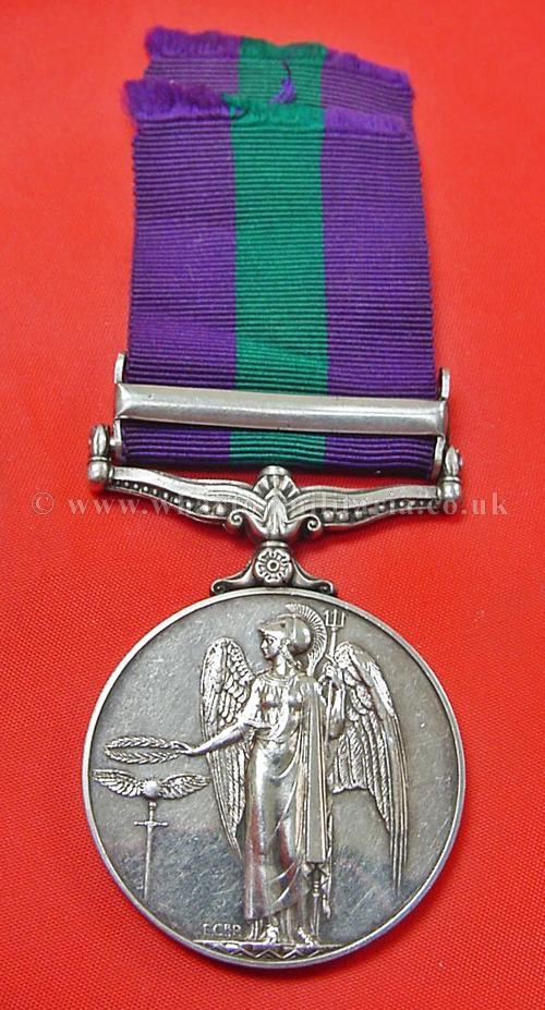 ERII General Service Medal, Cypris clasp to 23493909 Pte. D. B. Toward. D.L.I. - medal in very good condition, unmounted with ribbon
