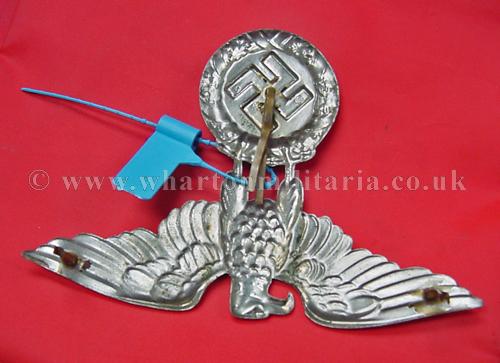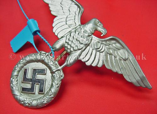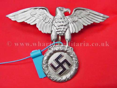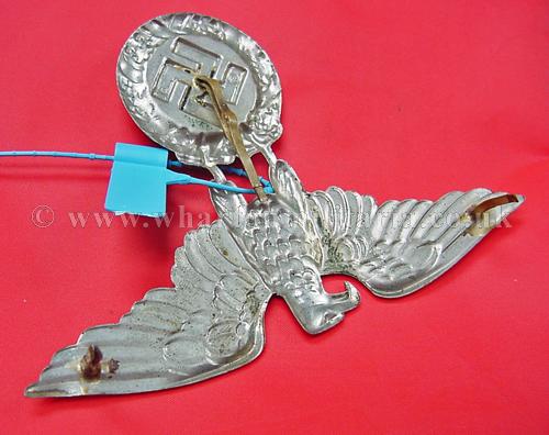 A rare NSKK crash helmet cap eagle in excellent condition, these large crash helmet eagles are extremely hard to find, not just because of the passage of time but many were destroyed as they became obsolete, a very rare eagle, RZM marked. An ex-Jamie Cross sale still retaining his blue band.