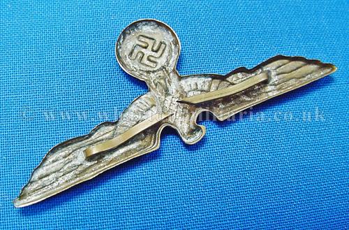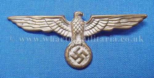 A scarce Kriegsmarine shore based administration officers cap eagle for the peaked cap, larger wingspan than the ratings cap eagle, excellent condition retaining much silver finish, both pins intact, a harder eagle to find these days.