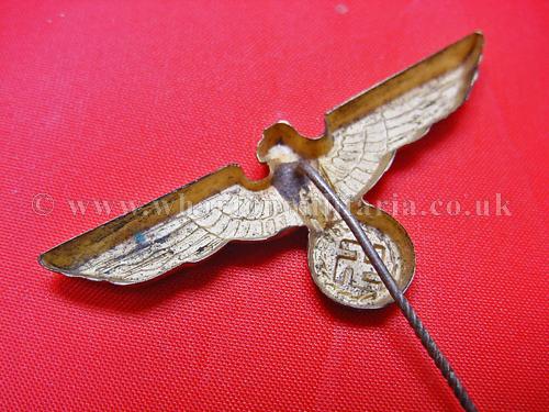 Kriegsmarine cap eagle on stick-pin for the ratings cap, excellent condition retaining full gilt finish including highlights, a very nice example of this cap eagle.