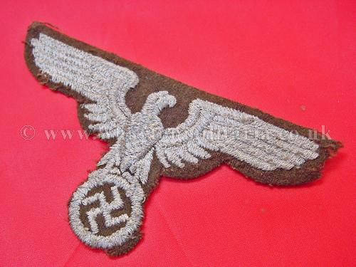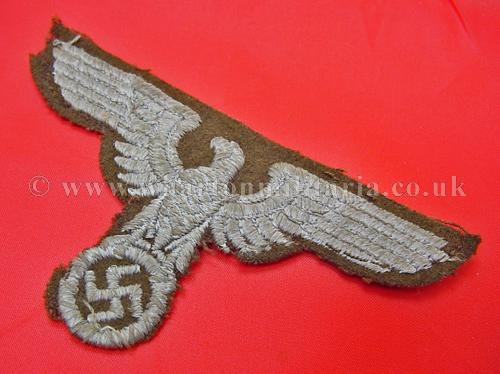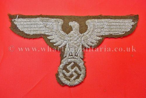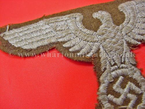 A rare NSDAP Eastern Peoples political cap eagle in good condition, these large woven eagles are very hard to find, not just because of the passage of time but many were destroyed as these areas were retaken in the latter days of the war, a rare eagle. Price reflects condition, a very good condition eagle would be three times the price.