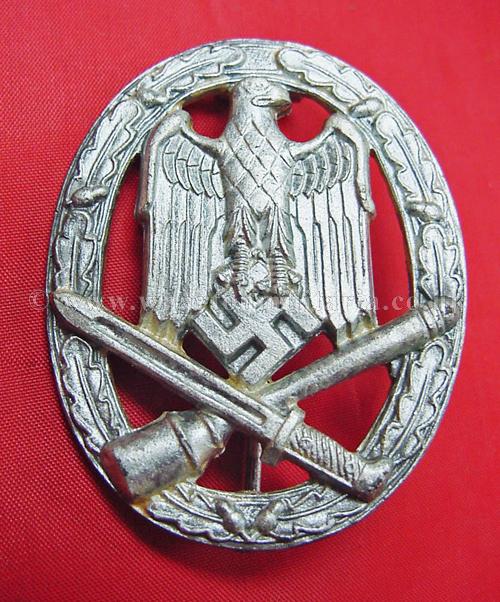 An early Army General Assault badge, in excellent condition with no wear at all, retaining most of its original issue silver finish, maker marked 'Frank & Reif, Stuttgart', a good example of this badge