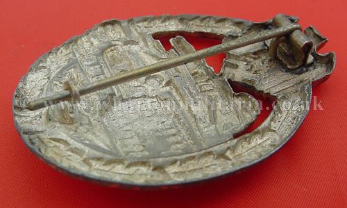 Army Panzer Assault Badge in Silver - scarce hollow back, 'daisy' variant