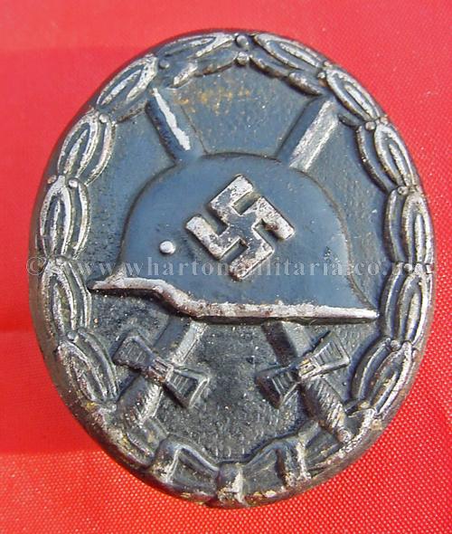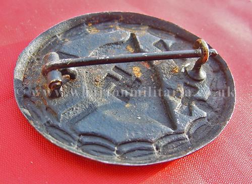 WW2 Black Wound Badge, early pressed type, black finish mostly remaining usual wear to the raised points, fine early badge with minimal signs of wear. Good example.