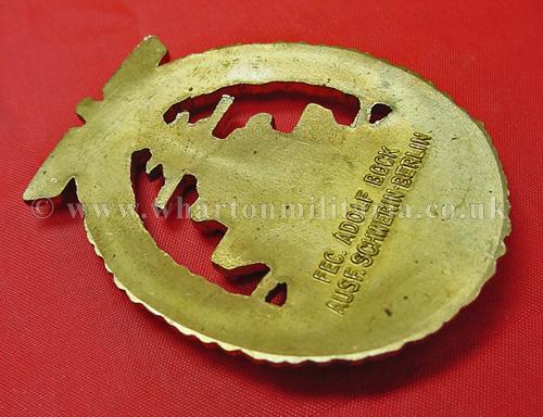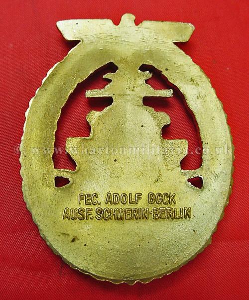 An unfinished drop forged Kriegsmarine High Seas Fleet Badge by Adolf Bock, badge has been cut and trimmed from its blank with its initial finish applied, maker marked 'Fec. Adolf Bock, Ausf. Scherwin-Berlin' in excellent condition, these are not often found and are a little something different for the collector.