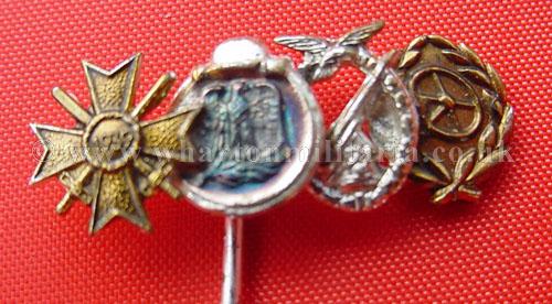Stickpin 1957 8mm - Group of 4, War Merit with Swords, Eastern Front, Leftwaffe Flak Badge and Driver's Badge in bronze