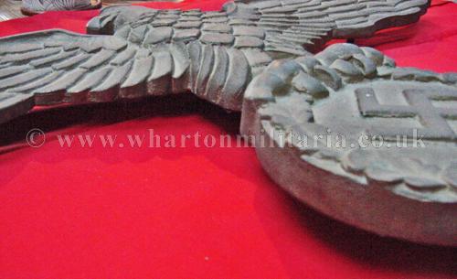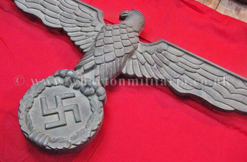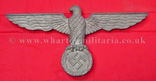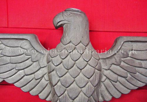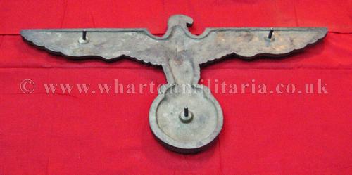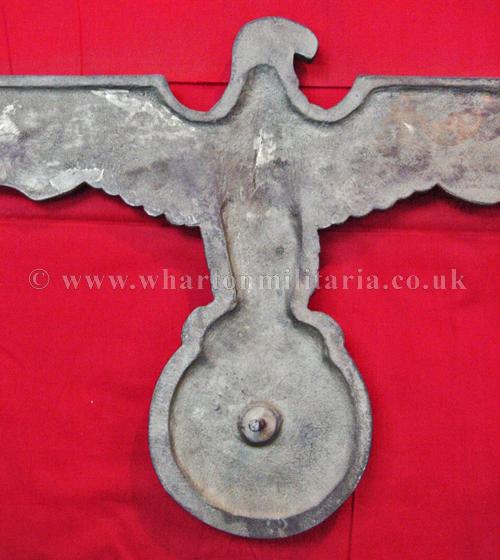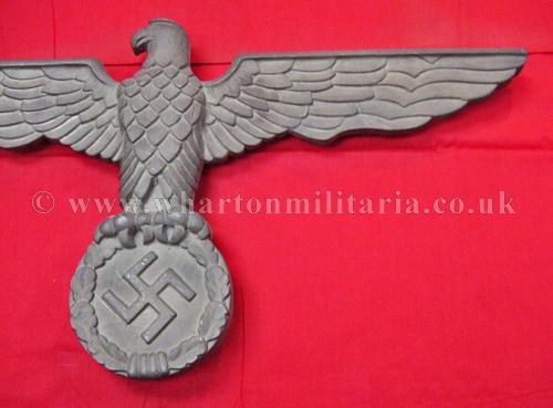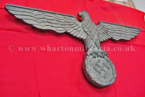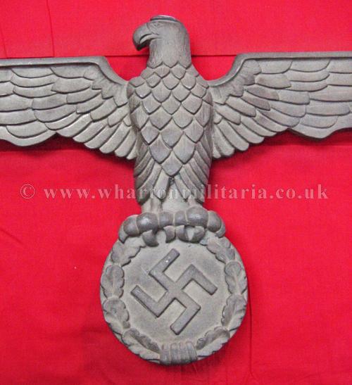 A rare German Wehrmacht building wall eagle in excellent condition retaining its mounting bolts, very heavy possibly bronze, wingspan is approx 72 cm wide, an early eagle with the eagle's head facing left in the pre-war manner, an ex-Niemann sale complete with his CoA.