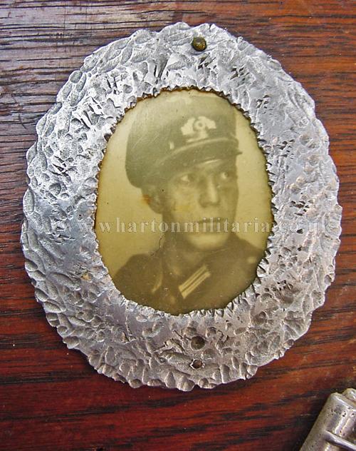 Third Reich period plaque for military service, in excellent condition overall, nice patina, approx size is 6.75 x 8.75 inches / 17 x 22 cm, shows an 88mm anti-aircraft gun plus the photograph of the person who the plaque once belonged to within a hammered silver wreath, a nice early military plaque.