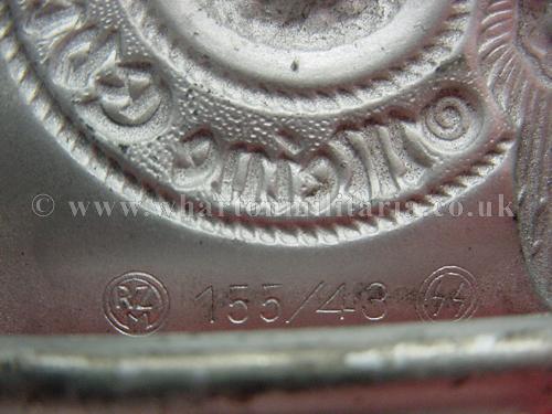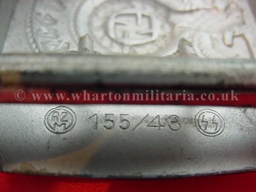 An almost unworn SS enlisted soldiers belt and buckle, buckle retains almost all of its silver finish, nicely maker marked 155/43 along with the RZM and SS circular stamps. Belt is slightly dry though this does not detract, is marked 'L.G.M. and dated 1940, length marked as 110. A fine example for the descerning collector.