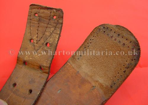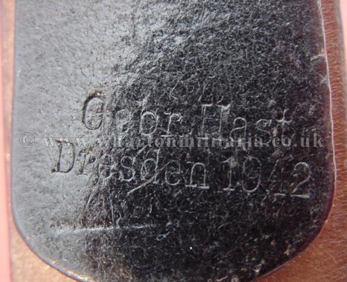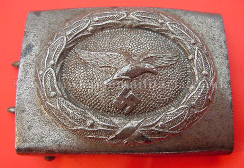 Luftwaffe belt and steel buckle in excellent condition retaining good crisp detail to buckle frontage. Buckle is unmarked. Belt is supple, maker marked 'Gebt.Mast, Dresden 1942'. The belt end has the signs of stitching, possibly an extension piece. A nice Luftwaffe issue belt and buckle.