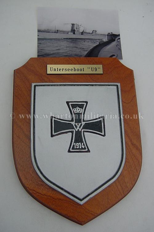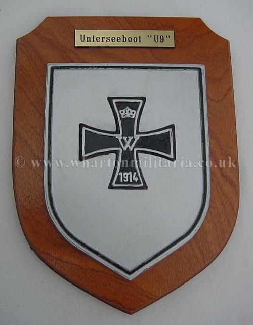 The Iron Cross emblem of U-9 from WWII is in honor of Otto Weddigen's famous U-9 from WWI. In WW1 in the first major submarine victory in history, German U-Boat U9 commanded by Captain Lieutenant Otto Weddingen, destroys the three British Light Cruisers, Aboukir, Hogue, and Cressy in under 75 minutes 'before breakfast'!. Weddingen recieves the Iron Cross and Pour Le Merit and the whole crew the Iron Cross. Weddingen puts the Iron Cross on his coning tower of his U-9 as a mark of honour to his crew and boat. The plaque is heavy, approx 9.5 x 7 inches overall. The Iron Cross is a metal plate. U-Boat items of this quality are not often seen on the market.