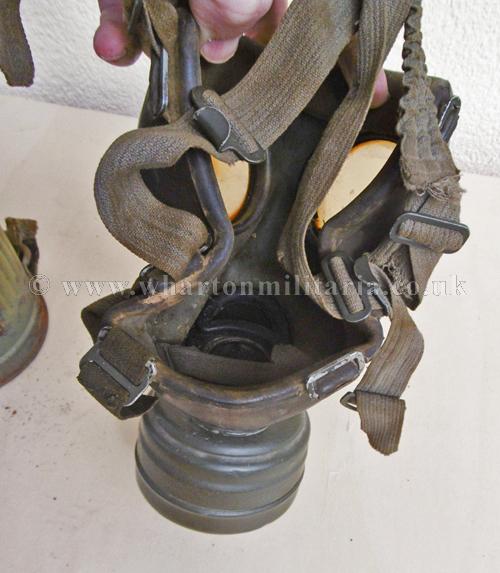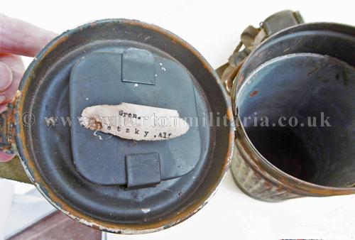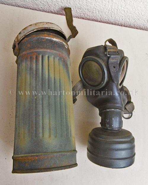 WW2 German gas mask and canister, gas mask maker 'bmw' and dated 1941, in very good condition, the cannister is also in good condition retaining original period camo paint to the body, lid has been white or tan at some point, clean inside. Nice camo paint canister.