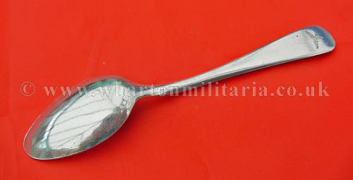 Luftwaffe aluminium tea spoon, approx. 14cm in length, stamped with the Luftwaffe eagle that faces left rather than right - associated with the Hermann Goring Division.