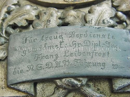 NSDAP Party Presentation Plaque to a Diplomat, Vienna 1940