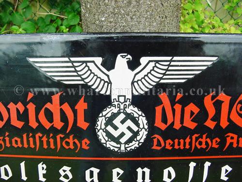 NSDAP Party enamel communication sign 'Here Speaks the NSDAP'