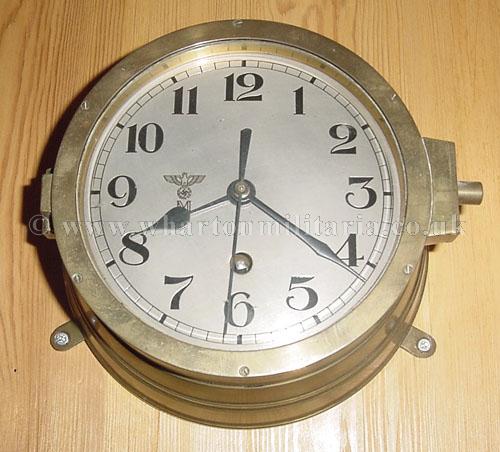 WW2 German Kriegsmarine ships clock, nicely marked with the KM eagle and swastika issue mark, full working condition though has a tendency to pick up a few minutes each week, eight day movement. A beautiful and sought after piece. Another clock just in, will list shortly.