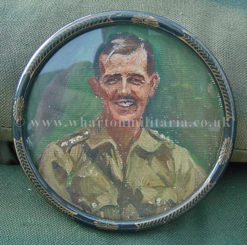 A nicely painted portrait of a wartime British Army Officer, approx 6-7 inches in diameter, a nice painting.
