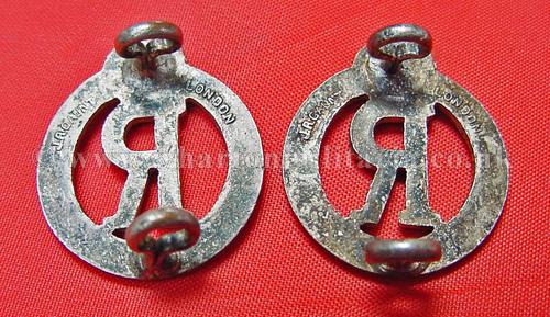 Queen Alexandras Imperial Military Nursing Service Reserve cap or collar badges, circ WW1 period, in excellent condition, most likely silver, all lugs intact, nicely maker marked 'J R Gaunt, London', a nice pair of badges that were worn as both collar and cap badges.