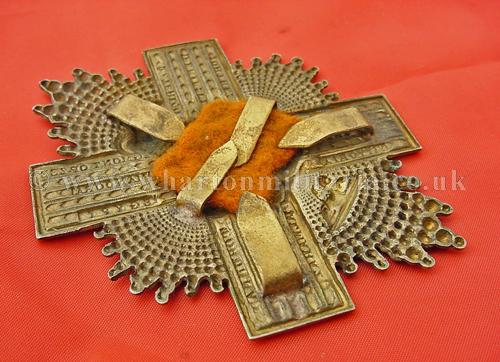 A fine example of a 92nd Gordon Highlanders officers helmet plate, scarce voided centre, still retaining all the blades and original cloth centre backing, these officers plates are quite hard to find.