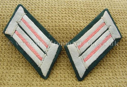 A fine pair of Army Panzer officers bullion wire collar patches with pink waffenfarbe, in excellent though used condition. Panzer collars are getting difficult to find especially in pairs.