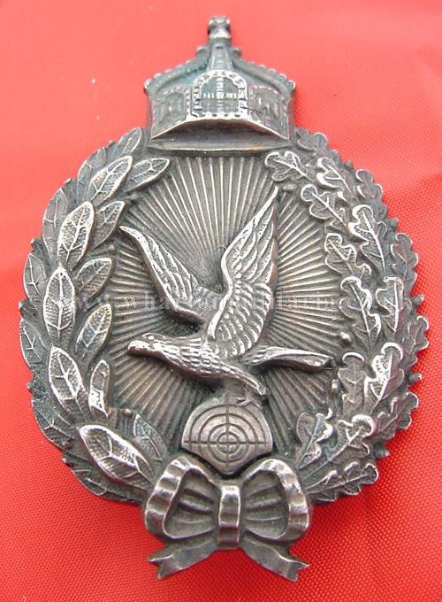 WW1 Imperial German Air Gunners Badge in excellent condition, hollow with flat back plate and tapered pin, unmarked ~ no manufacturers detail or silver content. This is a scarce badge.