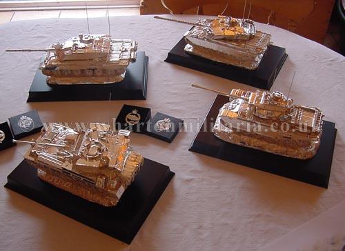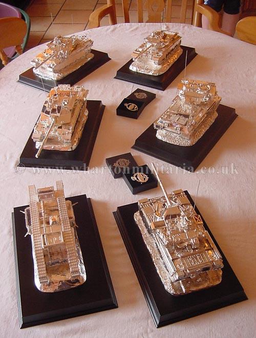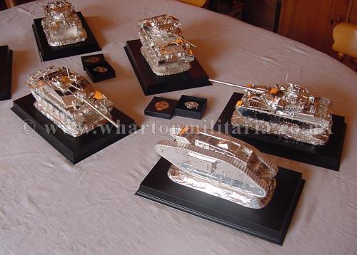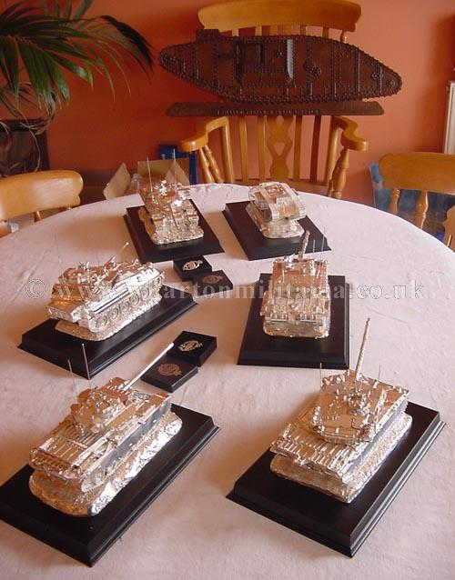 Before you is probably the most stunning collection of hallmarked silver tanks that you will ever see outside of a regimental silver room. They are listed individually, but I wanted you to get an appreciation of their size and presence when placed upon a table. Dine with the finest silver table pieces laid out for you, enjoy their commanding presence and know that you are in the company of the some of the best tables in the land! As silver prices continue to soar not only are the tanks fine works of art but a sound investment too, many of the tanks have a considerable weight in sterling silver. The tanks are all sterling silver hallmarked.