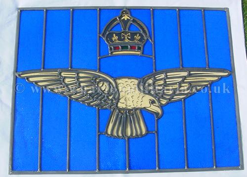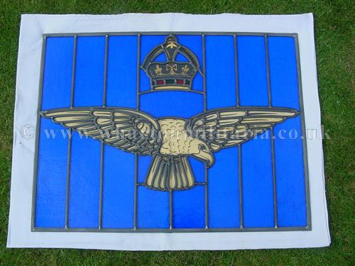 A lovely condition Royal Air Force leaded glass panel, absolutely crisp in colour without any damage whatsoever, panel is approx 80x56 cm. Early design with the crown possibly 1930s. Beautiful glass-work, a lovely item most likely intended for an Officers Mess or headquarters building somewhere.