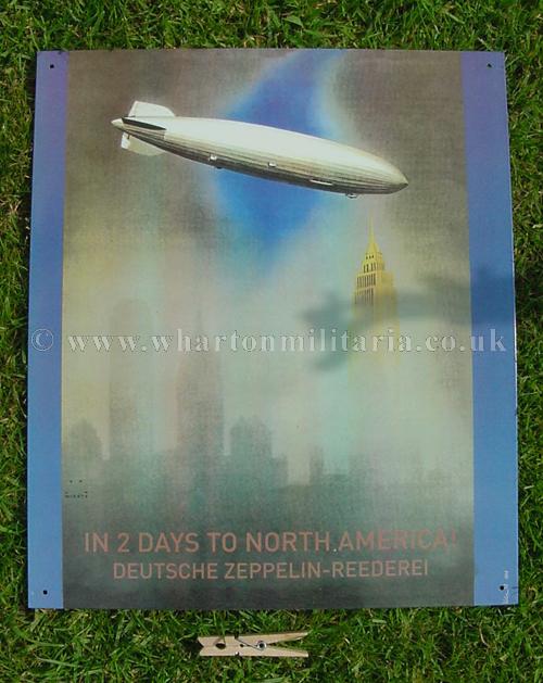 An excellent printed metal plate advertising the arrival of the Zeppelin in the skies of the USA. Metal plate is approx 15 x 13 inches, not a period printed plate but about 1970s. No damage to the image and no bends, creases or damage to the plate. A nice item of avaition interest.