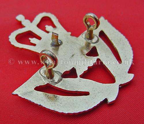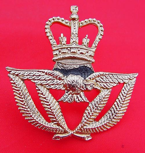 Royal Air Force Officers cap badge, small size, gilt staybright eagle under Queens Crown over laurel sprigs, two lugs to rear.