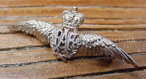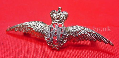 Royal Air Force wings sweetheart brooch, Queens Crown, wingspan approx 40mm, fitted with a brooch pin, silver finish, possibly silver but unmarked, looks unworn, nicely detailed