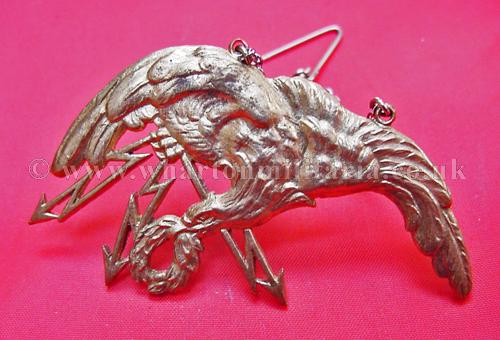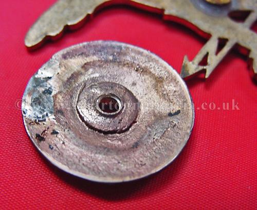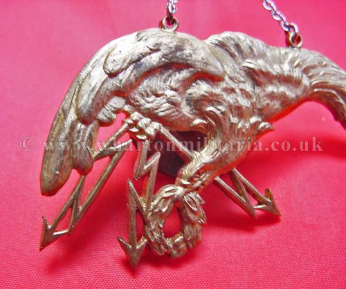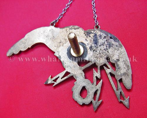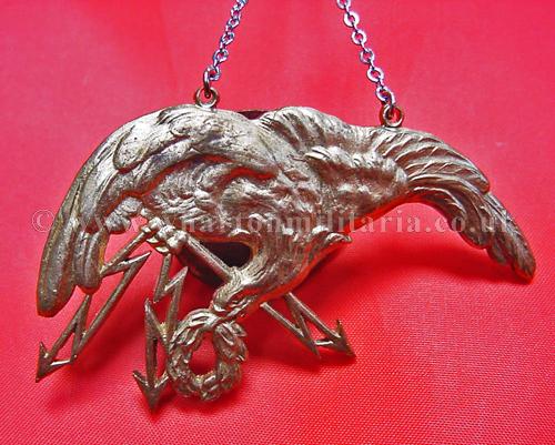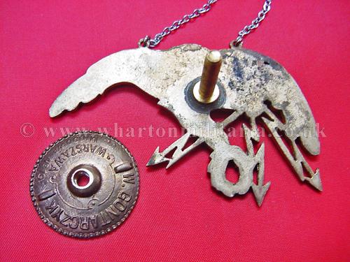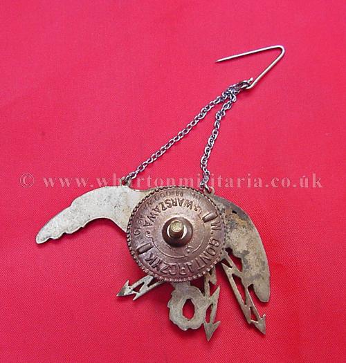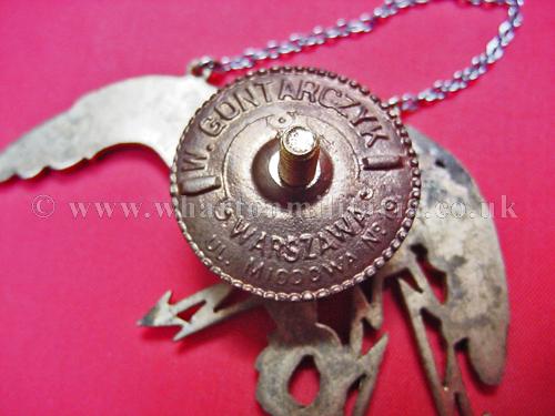 Polish Observer qualification badge, retaining most of its gilt finish and hanging chain, screw button is marked 'W. GONTARCZYK, WARSZAWA, UL. MIODOWA no. 19' - approx size is 65x38mm, nice looking badge.