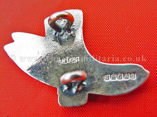 A scarce wartime RAF 'Walkers' badge - given to downed aircrew who 'walked back' to the squadron, solid silver, marked 'silver' and with Gaunt makers mark, both loops intact, in excellent condition with minimal wear or scratches, excellent badge that is difficult to find these days.