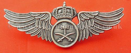 A very nice Saudi Arabian military pilot's wings, excellent condition, both pins intact, approx 50mm wingspan. Scarce wings, difficult to find Saudi Arabian military items.