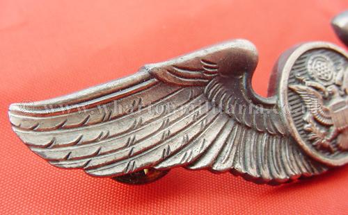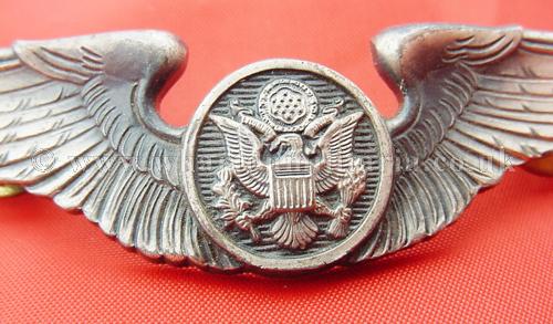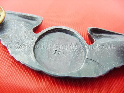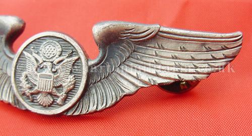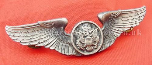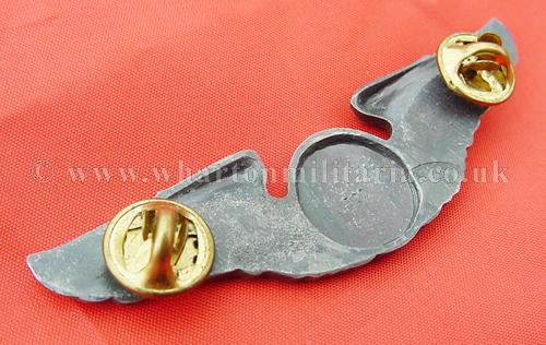 WW2 American Air Crew Wings, clutch back rear fixings, marked 'I21'.