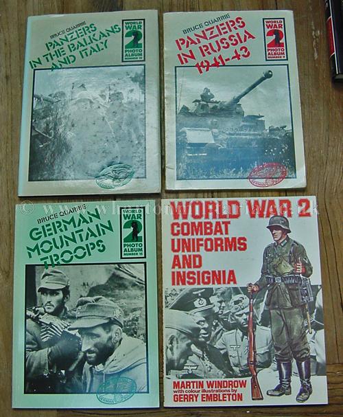 WW2 German Reference Books - Panzers in Russia 1941-42, Panzers in the Balkans and Italy, German Mountain Troops, WW2 Combat Uniforms and Insignia - all in very good to excellent and clean condition