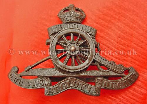 Royal Artillery - King's Crown in bronze, rotating wheel, with 2 blades, heavy quality, very nice example