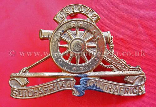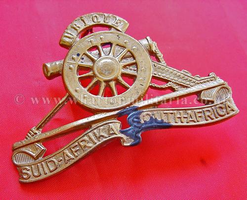 South African Field Artillery cap badge, a little discolouration to the front, both lugs intact.