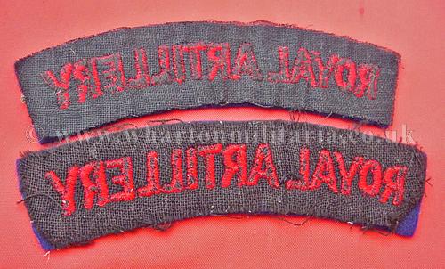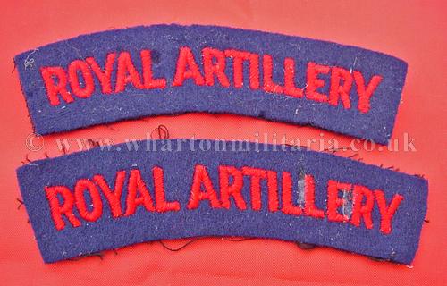 WW2 cloth shoulder titles 'Royal Artillery' - pair, moth nip on one, very good condition
