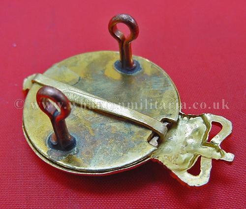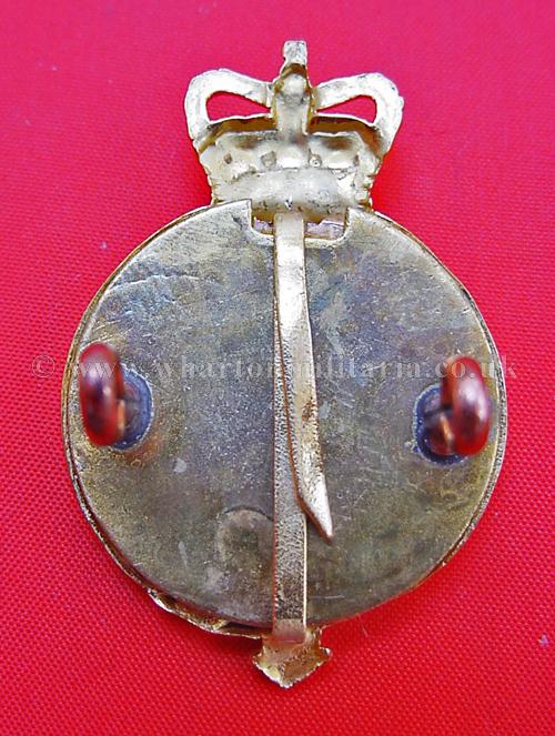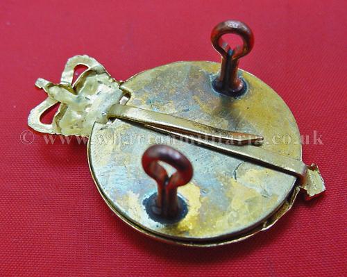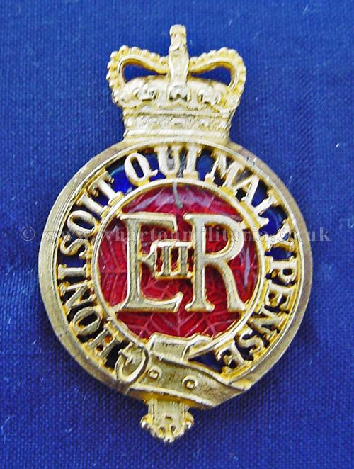 Household Cavalry Officers badge, Queens Crown, frosted gilt burnished fully fretted regimental title and ERII cypher centre backed by red/blue vitreous enamel - (1/2 inch lugs) - Firmin, very scarce.